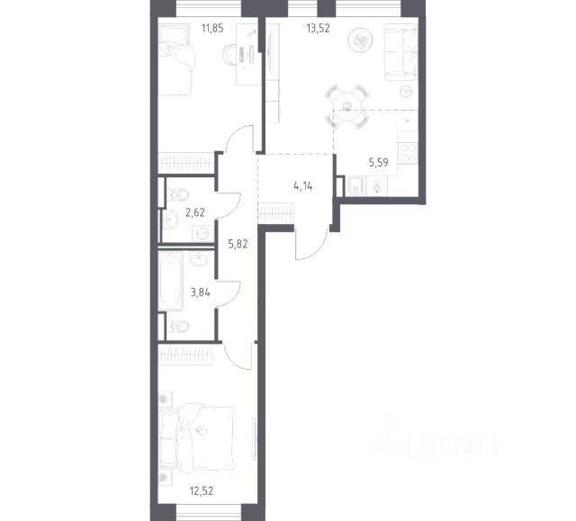В продаже 2-комнатная квартира в корпусе 6-7 ЖК 'Живи! В Рыбацком'. Квартира располагается на 12 этаже, общая площадь 51.85 м2.