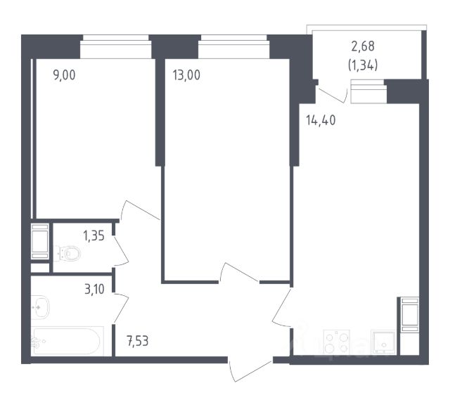 В продаже 2-комнатная квартира в корпусе 39 ЖК 'Живи! В Рыбацком'. Квартира располагается на 14 этаже, общая площадь 55.0 м2.