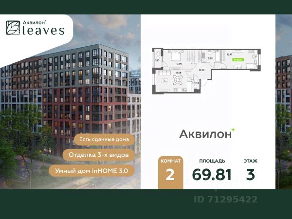 Купи квартиру в ЖК "Аквилон Leaves"! Отделка В квартире выполнена предчистовая отделка WhiteBox +Возможен дозаказ отделки в любом из 3 цветов: SAND, TERRA, GRAPHITE Отделка входит в стоимость квартиры в ДДУ ЖК "Аквилон Leaves" Жилой комплекс класса бизнес-лайт "Аквилон Leaves" воплощает идеальную синергию природы, технологий и дизайна. В одном из самых престижных районов Санкт-Петербурга мы создаем функциональную жилую среду, которая позволит максимально быстро и удобно решать бытовые вопросы, сохраняя ценное время для семьи и любимых занятий. -Малошумные лифты -Сквозные парадные -Светопрозрачные входные группы -Увеличенная высота первого этажа -Безбарьерная среда -Подземный паркинг Стандарты Группы Аквилон для вашей комфортной жизни Thermo-S экономия на коммунальных платежах за счет дополнительно утепленных стен, кровли и цоколя. Энергоэффективные окна с селективным покрытием и аргоновым заполнением Soundstop - дополнительная шумоизоляция внутренних перегородок и межэтажных перекрытий, шумозащитные окна, малошумные лифты Light-in - в квартирах устанавливаются широкоформатные окна, увеличены на 30%. Высота подоконников на уровне 60 см от пола. Vent-in - в каждой комнате есть клапаны индивидуальной вентиляции, которые обеспечивают приток свежего воздуха с улицы. inHOME умный дом в каждой квартире Интеллектуальная цифровая система, которая позволит дистанционно решать бытовые вопросы, управлять квартирой и экономить на оплате коммунальных услуг. В состав inHOME входят: IP-домофон, Face key, "умные" счетчики, датчики протечки, дистанционное отключение розеток, и т.д. Двор ваш личный парк Благоустройство двора от студии ландшафтного дизайна MEGABUDKA отсылает нас к образу зеленого листа. Современная архитектура гармонирует с окружающей средой, а экологические стандарты и "умные" системы обеспечивают ежедневный комфорт. -Зонирование на площадки для активного и спокойного отдыха. -Ландшафт с геопластикой и рельефом напоминает естественную красоту природных парков. -Всесезонные растения -Высаживаются взрослые деревья и кустарники Локация и инфраструктура Помимо разнообразной инфраструктуры, рядом с комплексом расположен Пулковский парк и сад "Дубовая роща". У жителей будут все возможности для отдыха на свежем воздухе. Велопрогулка, пробежка или летний пикник наслаждайтесь природой, не уезжая далеко загород. -10 мин. до м. Московская -15 мин. до м. Звездная -15 мин. до аэропорта Пулково -30 мин. до Невского пр. #Z5Docu