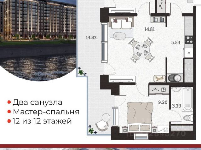 Продается просторная 2-комнатная квартира от застройщика в жилом комплексе "Setl Ривьера" в активно развивающимся Невском районе. До метро можно добраться на транспорте всего за 10 минут. Сауна в ванной комнате. Расслабьтесь и восстановите силы, как в СПА-салоне. Уникальная, функциональная европланировка, большая кухня-гостиная 16.08 м², просторная прихожая 8.5 м². Общая площадь квартиры - 59.33 м², жилая 23.51 м², высота потолка 2.77 м. Квартира продается с отделкой "NORD LINE WHITE ВК NEW". Что особенного в ЖК "Setl Ривьера"? • Первая береговая линия Невы. 5 км до центра Петербурга • "Активити парк" - пространство для занятий спортом и отдыха. "Ривьера парк" с променадом и панорамной ротондой • Масштабные дворы 10 000 кв.м. с авторским ландшафтным дизайном • Двухуровневые единые входные группы • Видовые квартиры с террасами, каминами и саунами