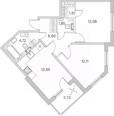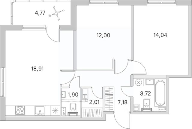Просторная кухня-гостиная (17,13) и две изолированные комнаты (14,18 и 12,43)— идеальное решение для семьи. Два совмещенных санузла (с ванной и душевой) для вашего удобства, лоджия (3,67) с французским остеклением (от потолка до пола).