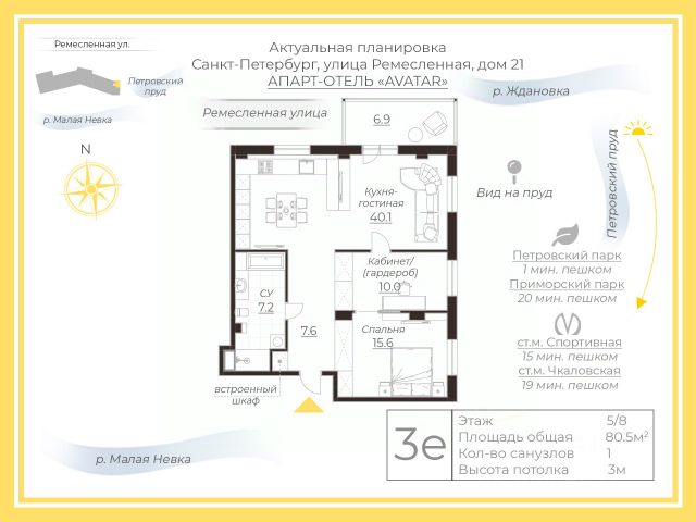 Арт. 130079955 Стильная квартира у воды в ЖК "Avatar" — пространство света, уюта и приватности Квартира для тех, кто выбирает комфортную жизнь в гармонии с природой и городом. О квартире Продаётся квартира в современном жилом комплексе "Avatar", расположенном на Петровском острове. Планировка продумана до мелочей и создаёт ощущение лёгкости и пространства: просторная кухня-гостиная с панорамным остеклением и видами на малую Неву и Петровский Пруд; кухня немецкого бренда Beckermann, оснащённая премиальной бытовой техникой Miele; отдельная спальня, обеспечивающая приватность и комфортный отдых; функциональная гардеробная для удобного хранения вещей; интерьер, наполненный светом и приятными цветовыми решениями. Квартира идеально подойдёт как для личного проживания, так и для тех, кто ищет качественное жильё в престижной локации. О жилом комплексе ЖК "Avatar" — камерный кирпично-монолитный дом от надёжного застройщика "Строительный Трест", сочетающий высокий уровень безопасности и приватную атмосферу проживания. Для жителей предусмотрено: круглосуточная охрана и видеонаблюдение; закрытая благоустроенная территория; презентабельная входная группа с ресепшн; высокий уровень сервиса и спокойная среда проживания. Локация — Петровский остров Петровский остров сегодня считается одной из самых престижных и комфортных локаций Санкт-Петербурга, объединяющей природу и близость центра города. Преимущества района: рядом Петровский парк, набережная реки Ждановки и Петровский пруд; всего около 7 минут на автомобиле до Дворцовой площади; в пешей доступности рестораны, магазины, фитнес-клубы и салоны красоты; развитая инфраструктура для семей: детские сады, школы и спортивные секции. Почему стоит обратить внимание Квартиры такого формата и уровня в данной локации появляются в продаже крайне редко. Это удачное сочетание приватности, видов, качества строительства и комфортной городской среды. Свяжитесь со мной, чтобы получить дополнительную информацию и записаться на просмотр — квартира производит ещё более сильное впечатление вживую.