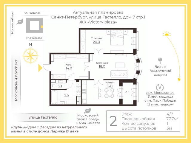 Арт. 129828892 Клубный дом Victory Plaza объявлен лучшим жилым комплексом в Северной столице по итогам престижного всероссийского конкурса, а также победитель премии Urban Awards. Французская архитектура комплекса находит продолжение в интерьере квартиры, где каждая деталь выверена. Изысканная работа с текстурами, естественные цвета и функциональное освещение найдут отклик у настоящих эстетов. Преимуществами квартиры являются: -Редкое планировочное решение для этого дома сочетает в себе панорамное остекление и французские балконы, которые обеспечивают превосходную вентиляцию и инсоляцию открывая вид на Чесменский дворец - живой пейзаж Петербурга. -Выполнен индивидуальный дизайн-проект с использованием премиальных высококачественных материалов; -Установлена приточно-вытяжная вентиляция с очисткой воздуха "Mitsubishi"; -Станция очистки воды до питьевого состояния; -Шумоизоляция; -В квартире установлены оконные алюминиевые системы "Reynaers" с двухкамерными стеклопакетами и накладками из натурального массива дерева. -Паркет из ценных пород дерева; -Техника, сантехника и мебель премиальных мировых брендов: Villeroy & Boch, Jacob Delafon, KPPERSBUSCH, Hansgrohe, GRETHER&WELLS, Dyson и др. -в квартире установлена система теплого пола. В доме имеется круглосуточный консьерж-сервис, в том числе управляемый со встроенного смартфона квартиры. Система круглосуточного видеонаблюдения, контроль доступа и охрана на всех уровнях обеспечивают высокий уровень безопасности для автомобилей и личного имущества. Уборка дома проводится максимально деликатно и в удобное для жителей время. Предусмотрены отдельные входы для персонала. Подогрев пола во дворе. Подземный двухуровневый паркинг для 155 автомобилей. Камера хранения для спортивного инвентаря, колясок и т.п. Современные лифты от топ мировых производителей "ThyssenKpupp" Безупречная транспортная доступность: •до метро 5 минут; •до зсд 5 минут; •до исторического центра 20 минут; •до Финского залива 25 минут. •до ExpoForum 20 мин. Три парка, рестораны, кофейни, салоны красоты в пешей доступности.