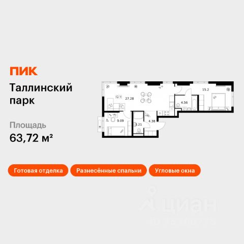 Продаётся 2-комн. квартира площадью 63,72 кв.м на 2 этаже 12 этажного дома (Корпус 4.1, Секция 2) проекта ПИК Таллинский парк. Светлый просторный подъезд на уровне земли, функциональная планировка, большие окна, c отделкой. "Таллинский парк" - проект в Ленинградской области, в районе Новоселье. До станции метро "Проспект Ветеранов" - 15 минут на автомобиле, а до КАД можно доехать всего за 4 минуты. "Таллинский парк" включает 16 жилых домов, детский сад и школу. В проекте появится центральный сквер с обильным озеленением, а через весь квартал протянутся широкие пешеходные бульвары. В зелёных дворах-парках будут оборудованы современные детские и спортивные площадки, обустроены места для отдыха. На первых этажах разместятся магазины, кафе и другие сервисы. Проектом предусмотрены персональные кладовые помещения - это доступный, экономичный и удобный способ хранения сезонных и крупногабаритных вещей. Освободите свою квартиру для полноценной жизни. Район Новоселье активно развивается в городском формате: здесь уже работают детские сады, школа и магазины. Для любителей зимних видов спорта открыта круглосуточная ледовая арена Ice Rink. За покупками и развлечениями также можно быстро доехать: 10 минут - и вы в Аутлете Fashion House Таллинское, гипермаркетах Лента, Леруа Мерлен и Окей. В 10 минутах на автомобиле находится Финский залив, на берегу которого расположились объекты культурного наследия. Рядом - Константиновский парк с отреставрированным дворцом, а чуть дальше расположена усадьба Знаменка. В великолепном Петергофе вы будете уже через 20 минут. Артикул 1026305 (Застройщик ООО "СПЕЦИАЛИЗИРОВАННЫЙ ЗА СТРОЙЩИК "СТРОЙ-ЭКСПЕРТ ") [cn_sbp_1807169] Продается 2-комнатная квартира с евроремонтом в Ломоносовском районе Ленинградской области.