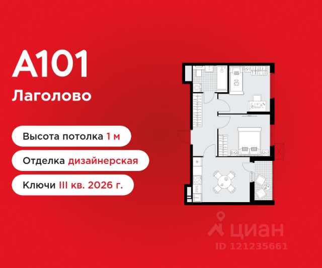 Старт продаж! 2-комнатная квартира площадью 46.45 в ЖК "А101 Лаголово" на 5 этаже. Квартира без отделки. Вид из окна на улицу. В квартире 1 санузел. Высота потолков 2.74 м. Предложения от застройщика на февраль 2026: - Гибкая рассрочка 20 000 руб/мес. и первым взносом 10%. ОТДЕЛКА Квартира передается без отделки. Благодаря тому, что в данном типе отделки стены не возводятся, вы сможете создать удобную планировку и самостоятельно организовать зонирование комнат. КВАРТИРА С МЕБЕЛЬЮ И ТЕХНИКОЙ В стоимость квартиры включен сертификат на 100 000 рублей от партнеров Hoff и M.Видео. Вы можете увеличить сумму сертификата и добавить его в ипотеку. А также у вас будет возможность увидеть все товары вживую перед установкой и выбрать лучшие варианты для обустройства вашей квартиры. ПАРАДНАЯ. В каждой парадной предусмотрены места для хранения велосипедов и колясок, гостевой санузел и удобная зона ожидания для гостей. ДВОРЫ И ОКРУЖЕНИЕ. Просторные дворы безопасны для детей, так как свободны от машин, закрыты от посторонних и постоянно находятся под видеонаблюдением. Во дворах создается разнообразная среда для детей всех возрастов: детские площадки с батутами, тактильными дорожками и игровыми комплексами. Для активного отдыха - воркаут-площадки, столы для пинг-понга и газоны для занятий йогой. Во дворах есть и тихие уголки - зеленые гостиные с уличной мебелью, где можно поработать на свежем воздухе или отдохнуть в тишине. Из внутренних дворов комплекса можно выйти на пешеходный бульвар длиной около 900 метров. Здесь будет организовано полноценное общественное пространство с амфитеатром, уличным кафе, ручьем, фонтаном и множеством мест для отдыха и игр. Большую часть бульвара займут благоустроенные зеленые зоны и теневые сады из десятков видов деревьев и кустарников, многолетних цветов и трав, которые будут радовать глаз круглый год. "А101 Лаголово" - современный город у подножия знаменитых Дудерговских высот, в объятиях чистейших озер и зеленых живописных массивов, наполненный всем необходимым для счастливой жизни. ИНФРАСТРУКТУРА. Мы занимаемся комплексным освоением территории. Наш приоритет - доступность всех сервисов для счастливой жизни. 1. Лаголово-город 15-ти минутной доступности. Вся необходимая инфраструктура: магазины, салоны красоты, образовательные учреждения, медицинские центры находятся в 15-ти минутах пешей прогулки от любой точки жилого комплекса. Это позволяет не тратить время на долгие перемещения. 2. Представьте идеальный город, где ребенок может спокойно играть, а пожилой человек наслаждаться заслуженным отдыхом. Жилая среда нашего комплекса может комфортно использоваться как 8-летним ребенком, так и 80-летним пожилым человеком. Дома, улицы, общественные пространства, тротуары спроектированы с заботой о людях разных возрастов. 3. Мы активно развиваем авторскую образовательную экосистему "Лёрнити". Она включает строительство 8 современных детских садов (2000 мест) и 3 школ (2945 учащихся). Мы учим родителей гармонично общаться с де Продается 2-комнатная квартира с евроремонтом в Ломоносовском районе Ленинградской области.