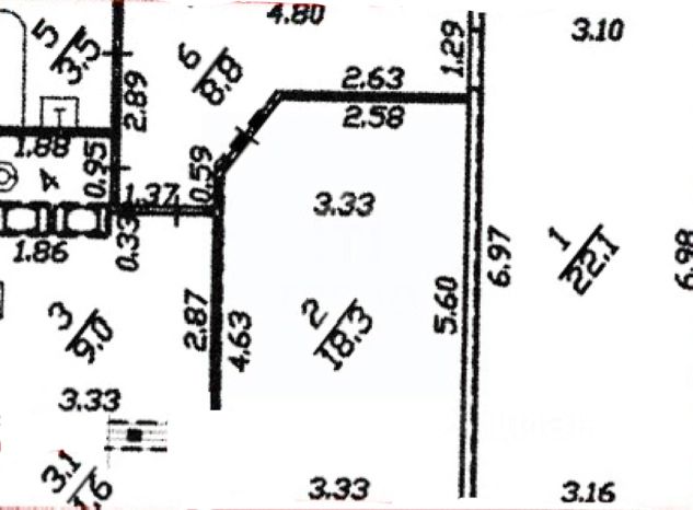 Жилая площадь 22.47 м2, кухня 19.15 м2. Площадь комнат: 10.4/12.07 м2, квартира без отделки, балконов - 1, окна выходят во двор и на улицу.