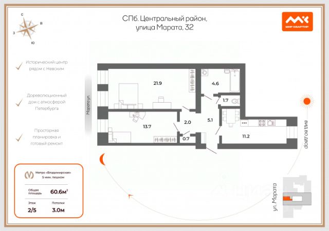 Продаётся 2-комн. квартира площадью 50 кв.м на 6 этаже 12 этажного дома (Корпус 6, Секция 2) проекта ПИК Витебский парк. Светлый просторный подъезд на уровне земли, функциональная планировка, большие окна, предчистовая отделка. Жилой квартал "Витебский парк" находится во Фрунзенском районе Санкт-Петербурга, в 15 минутах пешком от метро "Обводный канал". А в 2027 году всего в паре минут от проекта планируют открыть станцию метро "Боровая". В квартал входят 3 детских сада, школа и 7 жилых домов с дворами-парками, куда не могут зайти посторонние люди и заехать автомобили. Школа на 1250 мест и детский сад на 350 мест откроются одновременно с заселением первой очереди, это значит, что жители проекта смогут отдать своих детей в новые образовательные учреждения на территории квартала. Во дворах приятно отдыхать, знакомиться с соседями и даже заниматься йогой, а для детей мы построим детские площадки. Рядом появятся современные спортивные площадки. На первых этажах домов откроются магазины, кафе и другие сервисы. Через весь жилой район протянется широкий пешеходный бульвар для прогулок и спорта. Рядом с "Витебским парком" есть всё для комфортной жизни: магазины, торговые центры, фитнес-клубы, кафе и рестораны, а ещё детские сады, школы, вузы и поликлиника. Артикул 1005269 (Застройщик ООО "СЗ "Лиговский Сити") [cn_sbp_1813642] Продам 2-комнатную квартиру с евроремонтом рядом с метро Обводный канал.