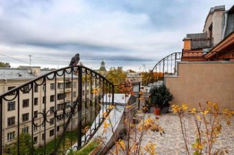 По стороне дополнительного окна ванной квартира граничит с настоящим символом Петербурга начала XX века двором - колодцем, который создает особенную атмосферу интимности и тайны и переносит вас в другую эпоху, где жизнь замедляется и наполняется особым шармом. Основные окна квартиры открывают захватывающий вид, простирающийся вдаль над крышами исторической застройки Петербурга.
