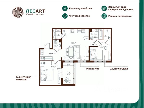Продаётся 2-комнатная квартира 154, общей площадью 59.2 кв.м., на 6. Дом комфорт-класса, 12 этажей, в окружении леса и малоэтажной застройки. Проект с умным домом. Передача квартир в сентябре 2026г. РАСПОЛОЖЕНИЕ И БЛАГОУСТРОЙСТВО Расположение ЖК "ЛесART" порадует любителей чистого воздуха — рядом находятся лесопитомник и Шунгеровский заказник. Особенность комплекса это его ART дворы, которые оформлены по мотивам произведений Василия Кандинского, Пита Мондриана и Пабло Пикассо. Дворы закрыты от машин, что обеспечивает безопасность детей и взрослых. Для семей с детьми особенно удобно наличие детского сада и школы прямо во дворе комплекса. На первом этаже расположены магазины, маркетплейсы, кофейни и всё что необходимо для повседневной жизни. Холлы - это продуманные пространства с колясочными, сквозными проходами и приятной музыкой в лифтах. СИСТЕМА УМНОГО ДОМА В КАЖДОЙ КВАРТИРЕ - Комфорт. Управление освещением, мультимедиа и климат-контролем. - Безопасность. Видеонаблюдение и мониторинг систем безопасности. - Экономия. Контроль систем и оптимизация энергопотребления. - Удобство. Управление с помощью мобильного телефона. ГК "ЕДИНО" Входит в тройку компаний-лидеров региона по потребительским качествам жилых комплексов, объемам ввода жилья и объемам текущего строительства. В цифрах: - 23 года на рынке - Более 50 построенных домов - 60 000+ счастливых обладателей квартир ПРЕИМУЩЕСТВА ПОКУПКИ В ЖК "ЛЕСART": - Сниженная ставка по семейной ипотеке от 5,5%; - Рассрочка без переплаты; - Обмен старой квартиры на новую без комиссии; - Возможность использовать материнский капитал; ЗАПИСЫВАЙТЕ НА ПРОСМОТР! Мы ждем Вас в нашем уютном шоуруме. Вы увидите отделку, дизайнерские решения и познакомитесь со сценариями Умного дома! Такси до офиса продаж и обратно БЕСПЛАТНО!