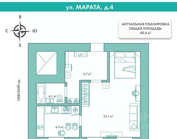 Арт. 117250977 Эксклюзивная квартира в элегантном и лёгком стиле на красивой тихой улочке, примыкающей к Невскому проспекту.