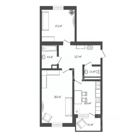 Квартира не перегружена мебелью, что позволит вам расставить все по своему усмотрению. Или при необходимости сделать ремонт.