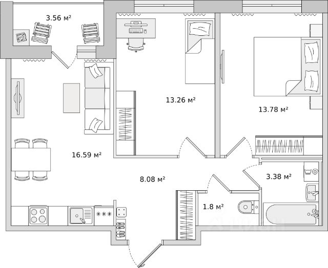 Вашему вниманию предлагается евродвухкомнатная квартира в доме бизнес класса ЖК Ultra City. Квартира расположена на 4 этаже, окна выходят во двор и на улицу. В квартире уникальная, функциональная планировка европейского стандарта, что делает ее более светлой и уютной. Общая площадь без учета лоджии 54.2 кв. м., кухня- гостиная правильной формы со встроенным гарнитуром и зоной для отдыха семьи и гостей 32 кв. м., спальня 12.4 кв. м., застекленная лоджия c системой хранения 3 кв. м., выход на лоджию из спальни. Санузел совмещенный. В квартире произведен качественный, дизайнерский ремонт, использовали современные европейские материалы класса люкс. Полы- паркетная доска Barlinek, плитка Porcelanosa. Всю технику и мебель заказывали под индивидуальный проект квартиры. Так же кухня укомплектована такими функциональными вещами как: винный шкаф, смеситель с функцией подачи чистой питьевой воды Omoikiri, фильтр обратного осмоса, мойка Franke, измельчитель отходов Bon Crusher, встроенная бытовая техника Neff. Сантехника Villeroy&Boch, смеситель и душ в санузле Kludi, мощный проточный водонагреватель. В гостиной зоне и прихожей организована грамотная система хранения вещей.Так же приятным дополнением для нового владельца будет кондиционер и smart TV. Квартира продается со всей мебелью и техникой. В жилом комплексе дежурит бдительная охрана, видеонаблюдение по периметру. Свой внутренний двор с детскими и спортивными площадками, множество организованных мест отдыха, свои шезлонги, также на территории расположены: баскетбольная площадка, скейт парк и столы для пинг-понга. Большое количество мест для парковки автомобиля, в том числе подземный паркинг. Отличная управляющая компания, следит за чистотой и порядком. В пешей доступности- гипермаркеты, магазины, аптеки, салоны красоты, ателье и другие направления удовлетворяющие потребности жителя комплекса. Развитая инфраструктура локации: детские сады, школы, свой детский сад на территории комплекса (рядом с парадной). Вблизи станция метро Комендантский проспект так же будет открытие ст. м. Шуваловский проспект. Быстрый выезд на главные дорожные артерии города: Парашутная ул., Шуваловский пр., КАД и ЗСД. Прямая продажа, документы готовы к сделке, без обременений, один взрослый собственник, полная сумма в договоре.