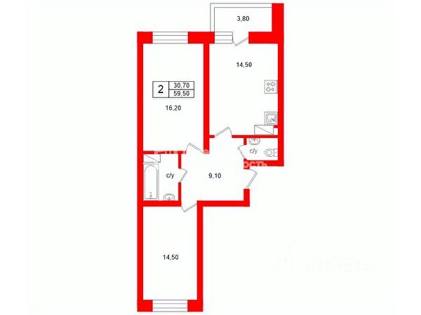 В подарок остается встроенный шкаф-купе в гостиной и кухня с бытовой техникой.