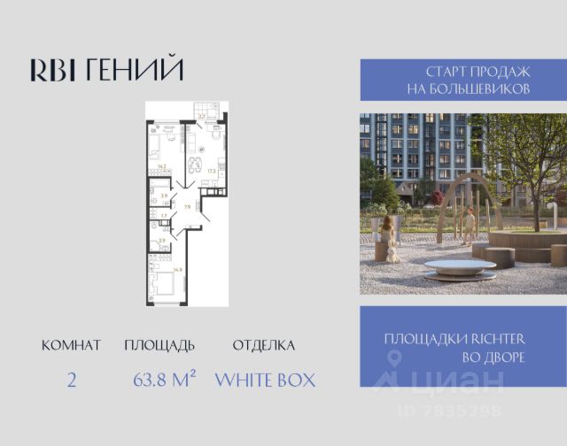 Цена действует при 100% оплате и на определенные ипотечные программы. Подробности — в отделе продаж по телефону. Продаётся 2-комнатная квартира в ЖК "Цивилизация на Неве" на 14 этаже. Общая площадь составляет 42.66 кв. м. Квартира с white box отделкой. Жилой комплекс "Цивилизация на Неве" располагается по адресу Санкт-Петербург, Невский. "Цивилизация на Неве" - видовые дома бизнес-класса, расположенные вдоль набережной Невы, всего в 7 км от исторического центра. Жилой комплекс идеально выражает особый дух, свойственный знаменитым просторным кварталам постройки сталинской эпохи в Москве и на Московском проспекте в Петербурге. Расположение: • 15 мин на авто до Невского проспекта; • 15 мин на авто до Московского вокзала; • 5 мин на авто до станции метро "Улица Дыбенко"; • 14 мин (7 км) до КАД. Уникальный дизайн входных зон, закрытая территория, видеонаблюдение и охрана, подземный паркинг с лифтом и другие особенности проекта отвечают заявленному классу. В каждом дворе предусмотрено озеленение по индивидуальному ландшафтному проекту с благородными растениями и кустарниками. Преимущества: • Закрытая территория с видеонаблюдением; • Подземный паркинг с лифтом; • Детская площадка на приватной безопасной территории; • Несколько детских садов и школ; • Инфраструктура шаговой доступности на первых этажах корпусов. Успейте приобрести квартиру на выгодных условиях! Чтобы узнать подробности, обращайтесь за консультацией по телефону. Купить 2-комнатную квартиру в муниципальном округе № 54 в Санкт-Петербурге.