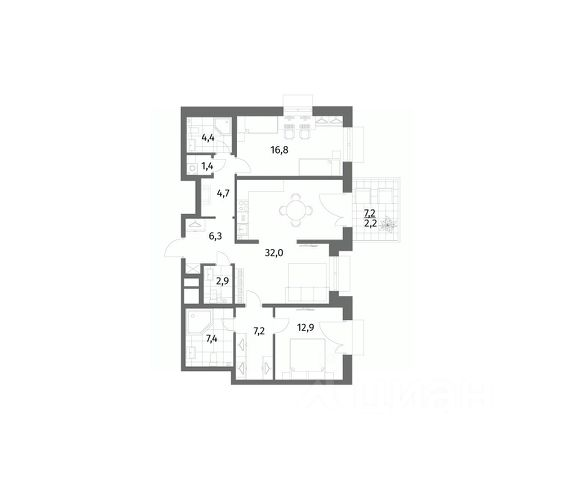 Продается квартира площадью 59.3 м²