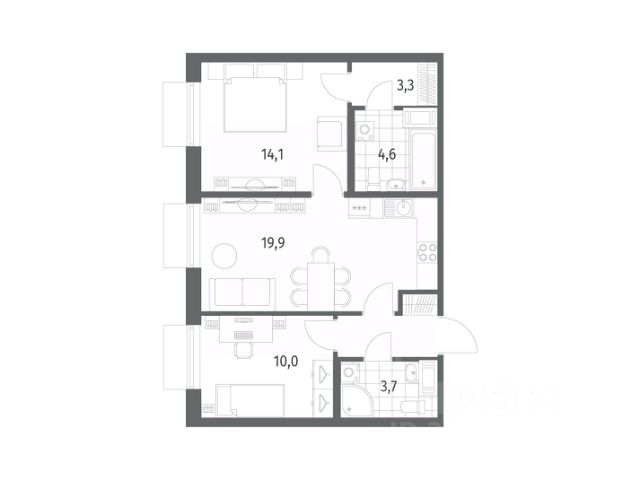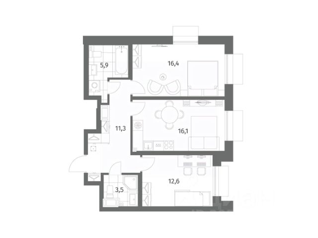 • ✅ Минимальная площадь: 59,3 м²