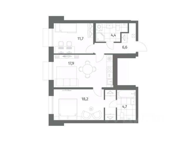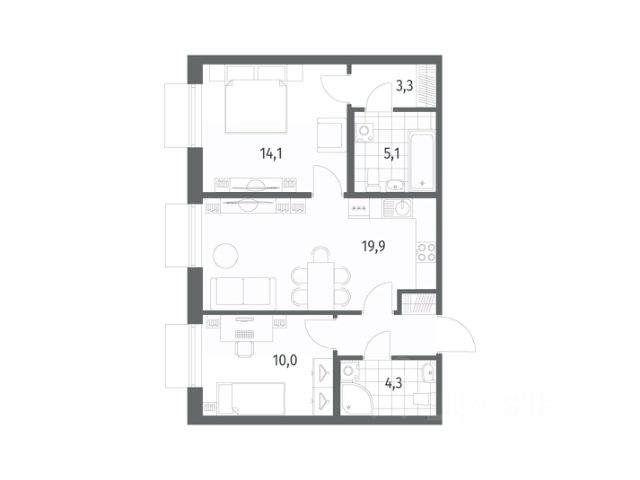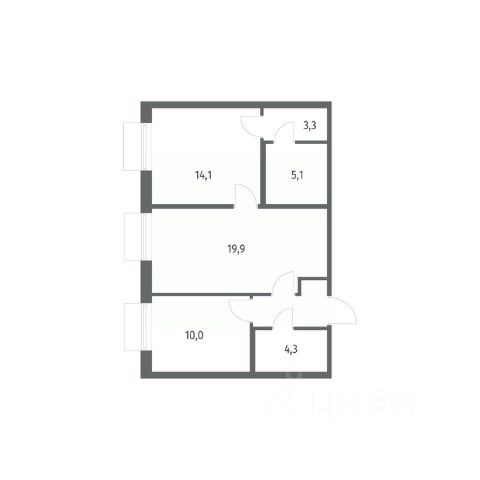 - Комнаты раздельные 19 м кв. + 12 м кв. + 10.1м кв.