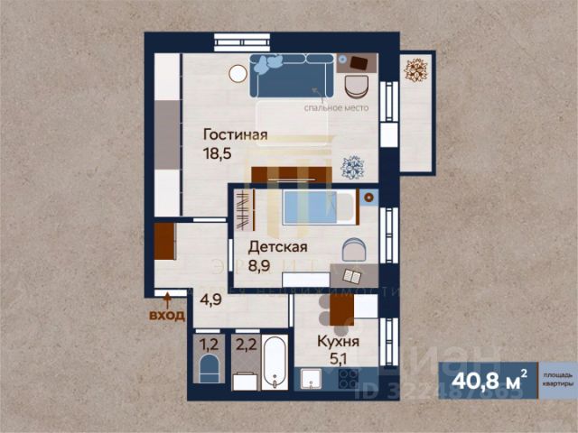 2евро комн. кв. 32.41 м², 2/4 этаж