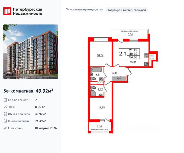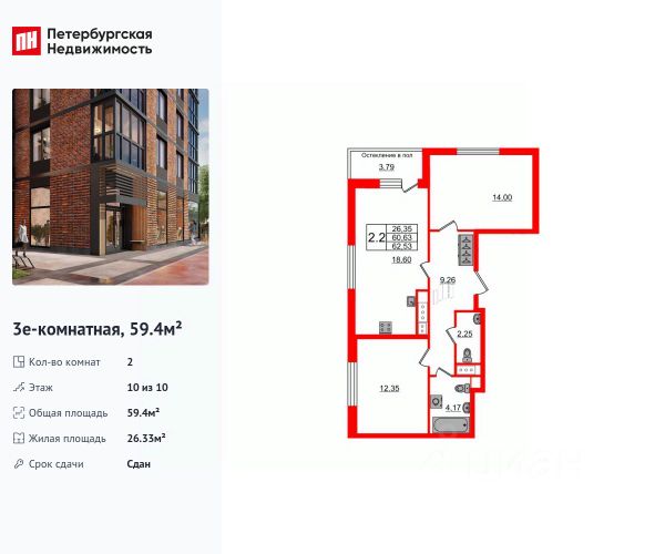Продается просторная 2-комнатная квартира от застройщика в жилом комплексе "Титул в Московском" в престижном Московском районе. До метро можно добраться пешком всего за 25 минут. Мастер-спальня с собственной ванной комнатой. Самое приватное пространство в вашей квартире. Уникальная, функциональная европланировка, большая кухня-гостиная 19.51 м², вместительная прихожая 6.52 м². Общая площадь квартиры - 59.38 м², жилая 24.38 м², высота потолка 2.77 м. Квартира продается с отделкой "NORD LINE SILVER ВК NEW". Что особенного в ЖК "Титул в Московском"? • Престижный Московский район • Авторская архитектурная концепция • 2 центральные входные группы с ресепшн и лаундж-зонами • Кленовая аллея с арт-стеллой, цветочная аллея и сад трав • Уютные дворы-патио, площадки SetlKids и SetlSport • Инновационный Лицей Setl с оригинальной архитектурной концепцией и уникальной образовательной средой 2-комнатная квартира на улице Кубинская в Санкт-Петербурге.