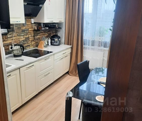Бонусом покупателю остаются встроенный кухонный гарнитур с техникой: духовой шкаф, электрическая индукционная плита, вытяжка.
