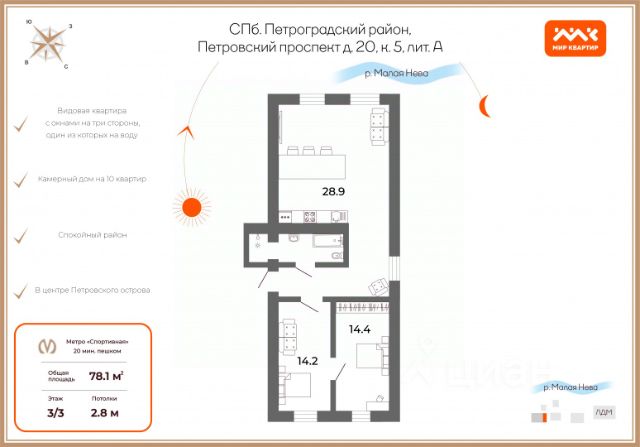 Евро-3 с мастер-спальней и панорамными окнами в ЖК Миръ Центральный район, Санкт-Петербург Премиум-сегмент | Сдача — IV кв. 2025 | Паркинг в наличии Цена ниже, чем у застройщика В продаже просторная евро-3 квартира в премиальном жилом комплексе Миръ. Функциональная планировка, высокий этаж, панорамное остекление, качественная инженерия и эстетика без компромиссов. Планировка и преимущества: Кухня-гостиная 20 м² Изолированная мастер-спальня с собственным санузлом Вторая комната + гостевой санузел Отдельная зона хранения Застеклённая лоджия Высокий этаж Панорамные окна от пола — максимум света и воздуха О комплексе: ЖК Миръ — премиальный клубный проект с выразительной архитектурой в неорусском стиле. Входные группы и лобби оформлены бюро Oleg Klodt, в отделке использованы натуральные материалы и элементы современного искусства. Закрытый зелёный двор с озеленением, уличными шезлонгами, амфитеатром из дерева, детской площадкой из экологичных материалов, зоной Wi-Fi и обогревателями. На территории: Подземный паркинг Колясочные, велопарковки Фитнес-зал с панорамными окнами Детский сад Бесконтактный доступ, видеостриминг, онлайн-сбор показаний Расположение: Центральный район Санкт-Петербурга До метро Площадь Восстания и Площадь Александра Невского — 10 минут пешком. Рядом: ТРЦ Галерея, Александро-Невская Лавра, магазины, школы, салоны, кафе и медцентры. Звоните — расскажем всё подробно, отправим планировку и организуем просмотр. Цена ниже, чем у застройщика. Отличная альтернатива покупке напрямую. ЖК Миръ — для тех, кто ценит эстетику, технологичность и локацию.
