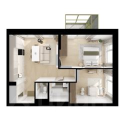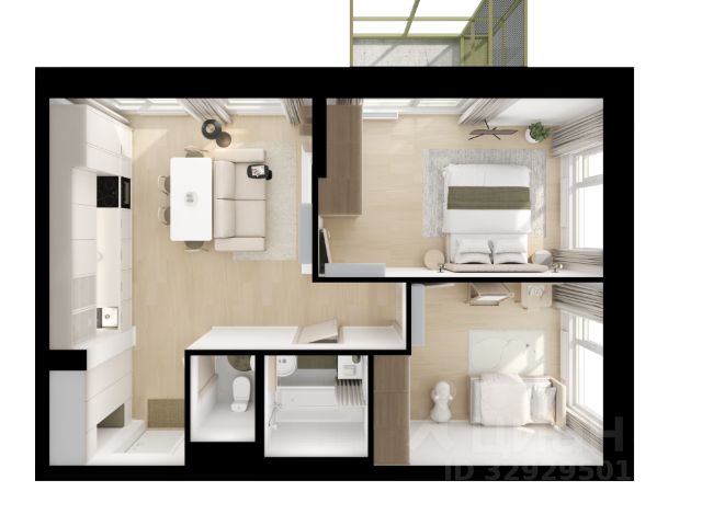 Жилая площадь светлая и просторная, выполнен качественный ремонт, продается с мебелью. В квартире две лоджии, выходящие на разные стороны, с видом во двор. Кухня-гостиная площадью 19 м² правильной формы. Две изолированные комнаты: 23,6 м² и 20,5 м². Ванная комната — 5,8 м², а также удобная постирочная — 2 м².