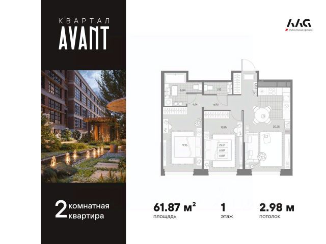 В историческом центре с особой атмосферой Петроградской стороны представлена 2-х комнатная квартира на 1 этаже общей площадью 61.87 кв.м. В корпусе KLASSIK представлены уникальные квартиры для ценителей формата премиум. Пространство вокруг дома вариативно и открывает возможности для отдыха всей семьей на природе. В корпусе расположена зеленая гостиная - полуприватная зона на 2-4 человека с деревянными креслами и диваном, а также детская площадка, интегрированная в сосны. Мультиформатный AVANT соединил вайб Петроградской стороны, индустриальный колорит и уникальную историю локации, органическую архитектуру и множество форматов жилой, коммерческой, сервисной, развлекательной и социальной инфраструктуры, сократив высоту и объем застройки в пользу природных зон, променадов и частного парка. Элитный жилой комплекс располагается в окружении самых престижных заведений и ключевых транспортных артерий Петербурга. AVANT придется по душе тому, кто имеет внутреннюю силу и свободу от стереотипов. Главным общественным пространством и инфраструктурной артерией квартала станет пешеходный променад протяженностью 200 метров для отдыха в привычном для каждого формате. Здесь кафе, рестораны и бутики, фитнес-центр и детские площадки чередуются с уединенными зонами отдыха, окруженными зеленью. Уникальные форматы жилья созданы на основе конструктивных особенностей исторического здания фабрики. Особенности классического лофта задают вариативность форматов: - Индустриальный шик с толщиной стен до 1 метра; - Панорамные окна; - Многоуровневые пространства; - Воздушные антресольные этажи. Такого в Петербурге еще нет. В новом проекте ААG на Пионерской новые смыслы, новые возможности, смелые решения. AVANТ вaша вcеленная Livе Wоrk Рlay Lеarn для жизни, отдыха и paбoты. - Семейная ипотека 4,3% на весь период кредитования - Траншевая ипотека с платежом 2013 рублей в месяц до ввода в эксплуатацию - Программы рассрочки 0% без удорожания стоимости квартиры - Отделка WHITE BOX в подарок.