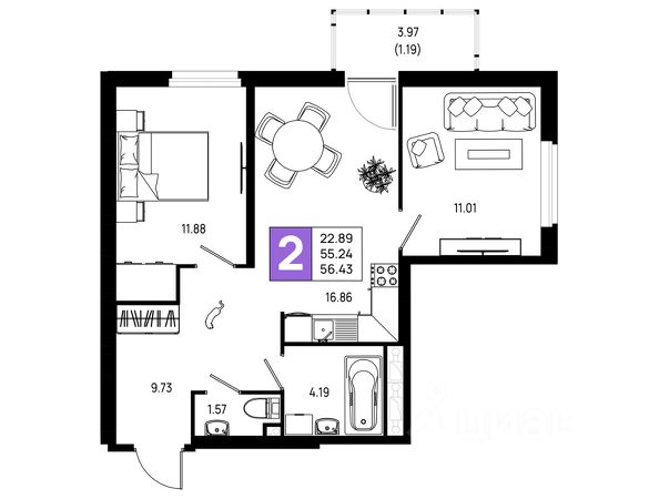 • ✓ В базе объявлений Циан 1,2 тыс. 2-комнатных квартир рядом с метро Обухово.