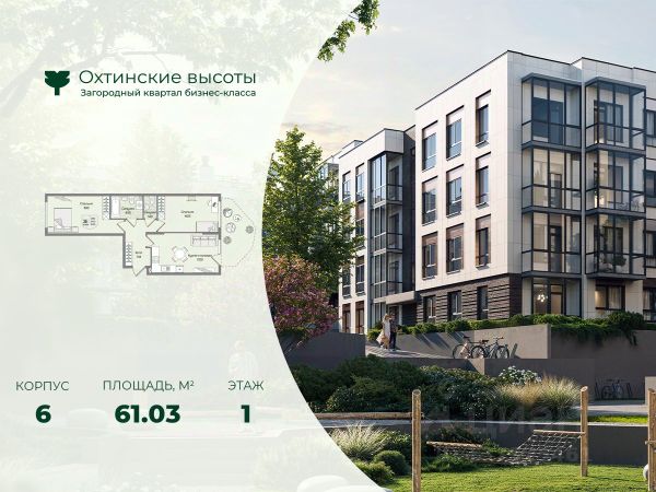 • 59 кв. м уюта и порядка: две просторные комнаты (по 13,4 кв. м) для родителей и ребёнка или кабинета, и большая кухня-гостиная (10,5 кв. м) — сердце вашего дома для приятных семейных вечеров.