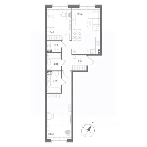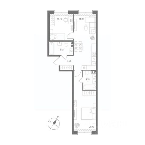 В квартире площадью 75 м2 с дизайнерским ремонтом есть: