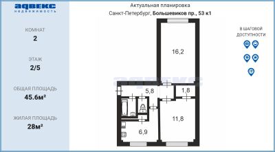 Цена со скидкой до 30% в прямой продаже от застройщика — только в этом месяце. На апартаменты действует беспроцентная рассрочка. Роскошные виды на Неву. 2-к апартамент в комплексе класса бизнес-лайт Зум на Неве на 2-м этаже. Общая площадь 45,8. Без отделки. Зум на Неве расположен в новом месте силы рядом с центром города на первой линии Октябрьской набережной в Невском районе, всего в 7 км от исторической части Санкт-Петербурга. Большой выбор эргономичных и максимально продуманных планировок позволит каждому найти вариант по душе. Панорамные виды на Неву, благоустроенные дворы, детская игровая комната, подземный паркинг, коммерческие зоны на первом этаже, это и многое другое делает Зум на Неве идеальным местом для жизни. Особенности: - Панорамные виды на Неву и город; - 10 мин. до Парка Строителей, 15 мин. до Лондон-молла, Ленты, Максидома, 15 мин. до метро "ул. Дыбенко", 12 мин. до КАД, 10 мин. до центра; - Единая архитектурная концепция. Сдержанные и монументальные фасады в неоклассическом стиле; - Парадный лобби для жильцов. Единый вход в комплекс с администратором, зоной ресепшн и охраной, зоной для бесконтактной доставки посылок и еды; - Подземный отапливаемый паркинг с доступом из парадной; - Доступно 3 варианта отделки на выбор: черновая, предчистовая (White Box) и чистовая; - Зоны отдыха для взрослых и детей, Wi-Fi-покрытие во дворе и в паркинге, зоны для питомцев, арт-объекты и много другое. В шаговой доступности вся необходимая инфраструктура от детских садов и школ до супермаркетов и салонов красоты; - Все происходящее контролируется видеокамерами, а покой внутренней территории и безопасность ваших детей гарантируется полным отсутствием транспорта во дворах в концепции "без машин".