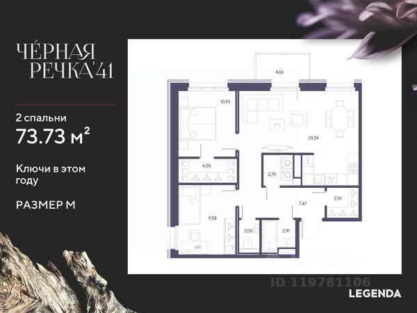 2-комн. квартира с предчистовой отделкой в ЖК "Черная Речка, 41" на 7 этаже. Общая площадь: 73.73 кв.м., жилая: 22.49 кв.м., площадь просторной кухни-столовой: 29.29 кв.м. Квартира угловая, идеально подойдет любителям тишины и панорамных видов. В квартире один балкон, один раздельный санузел. Высота потолков 3.0 м. ЖК "Черная Речка, 41" находится в престижной и перспективной части Приморского района с аристократическим прошлым. Современные инженерные и технические решения, повышающие качество жизни TechnoBox включают в себя: стационарный и удаленный контроль дома, систему Air Design здоровое дыхание без лишнего шума, мультисервисную сеть, объединяющую коммуникационные системы. Квартира готова к декорированию. Застройщиком сделана шумоизоляция; стены подготовлены для отделки; проведена электрика с учетом рекомендаций по расстановке мебели и бытовой техники; выровнен пол. В каждой квартире установлена взломостойкая входная дверь, окна со специальным термоизолированным алюминиевым профилем. В ЖК "Черная Речка, 41" уникальные планировки. Здесь есть квартиры с панорамными террасами, эркерами, французскими балконами. Во дворе комплекса несколько функциональных зон. Здесь предусмотрены детские площадки с канатной дорогой и мягким конструктором, зона для игр и занятий спортом, места для отдыха взрослых, столы для настольных игр и амфитеатр. В ближайшем будущем рядом с комплексом откроется детский сад с бассейном. Срок сдачи 4 квартал 2025 года. В подземном паркинге 483 м/м. Спуститься в паркинг можно на лифте прямо со своего этажа. В районе ЖК "Черная Речка, 41" хорошо развита инфраструктура и близко находятся скоростные магистрали. В шаговой доступности расположены: Строгановский парк (2 минуты), станция метро "Чёрная речка" (8 минут), река Нева (10 минут), а также Ботанический сад Петра Великого, Каменный и Елагин остров. Продается 2-комнатная квартира на набережной Черной речки в Санкт-Петербурге.