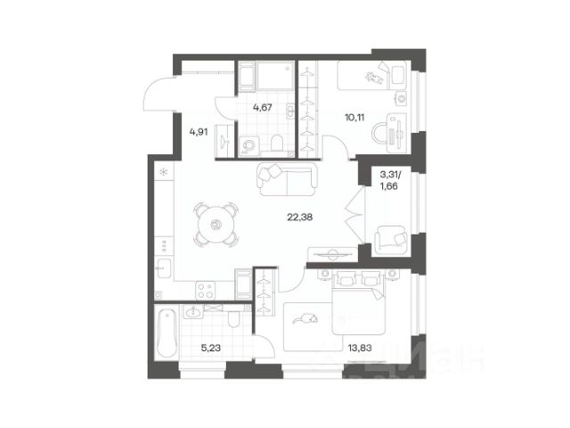 Продается квартира площадью 62.79 м² на 3 этаже 1 секции в Речной квартал от компании ГК "ТРЕСТ". Площадь кухни 22.38 м². Семейный жилой комплекс комфорт-класса "Речной квартал" от Группы компаний "ТРЕСТ" расположен в Невском районе Петербурга на пересечении Октябрьской набережной и Русановской улицы. Первая очередь квартала состоит из трёх корпусов, расположенных лучеобразно, чтобы максимально использовать естественное освещение и обеспечить видовые точки на локацию. Проект выделяется современными архитектурными решениями и дизайном. Концепция развития и благоустройства придомовой территории разделена на зоны отдыха, досуга и игровые площадки с учетом возраста и потребностей детей и взрослых. Квартал рассчитан на семейных покупателей, поэтому здесь нет студий: только одно-, двух- и трёхкомнатные квартиры. В проекте представлены квартиры с кухнями-гостиными, мастер-спальнями, гардеробными и кладовыми. "Речной квартал" - современный жилой комплекс с разнообразным благоустройством придомовой территории, просторными европланировками, закрытой охраняемой территорией и подземными паркингами. На территории комплекса уже функционирует детский сад на 110 мест. Также в квартале будет построена общеобразовательная школа на 475 мест с бассейном и стадионом. Открытие школы запланировано на 2029 год. Квартиры в ЖК "Речной квартал" можно приобрести с готовой отделкой от застройщика. Для покупателей квартир предусмотрено два варианта чистовой отделки "Ваниль" и "Шоколад". Чистовая отделка в квартирах ЖК "Речной квартал" предполагает монтаж натяжных потолков, укладку ламината, оклейку стен обоями под покраску, установку светильников и межкомнатных дверей. При отделке новой квартиры применяются качественные, натуральные и экологичные материалы, монтируется стильная импортная сантехника европейских брендов. В объявлении указана стоимость квартиры при 100% оплате. При других формах оплаты - базовую стоимость квартиры уточняейте на официальном сайте компании или у менеджера отдела продаж. Застройщик АО "Специализированный застройщик "Строительный трест". Продается 2-комнатная квартира в округе Народный в Санкт-Петербурге.