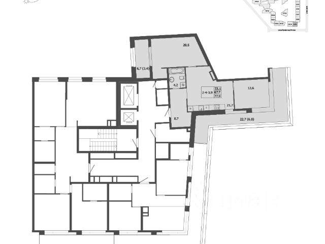 Продается 2-к квартира без отделки в ЖК "ЛДМ". Общая площадь квартиры — 77.9 кв. м, этаж 9 из 9. Тип дома — монолитный. Цена указана при 100% оплате. Описание из материнского фида