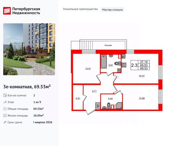Продается уютная 2-комнатная квартира от застройщика в жилом комплексе "Бионика Заповедная" в динамичном Приморском районе. До метро можно добраться на транспорте всего за 11 минут. Мастер-спальня с собственной ванной комнатой. Самое приватное пространство в вашей квартире. Уникальная, функциональная европланировка, большая кухня-гостиная 17.55 м², вместительная прихожая 7.45 м². Общая площадь квартиры - 56.2 м², жилая 23.2 м², высота потолка 2.77 м. Квартира продается с отделкой "NORD LINE WHITE ВК NEW". Что особенного в ЖК "Бионика Заповедная"? • Оазис в городе 3 минуты пешком до Новоорловского заказника (140 ГА) • Захватывающие виды из окон на хвойный лесопарк • Всесезонный "Заповедный парк" во дворе площадью 23000 кв.м. • 5 единых входных групп с авторским дизайном и лаундж-зонами, сити-виллы на первых этажах с палисадниками и высотой потолков до 4 м • Места притяжения: фонтан "Бионика", спортивный кластер со скейт-парком, фотозоны с арт-объектами Купить 2-комнатную квартиру в округе Коломяги в Санкт-Петербурге.