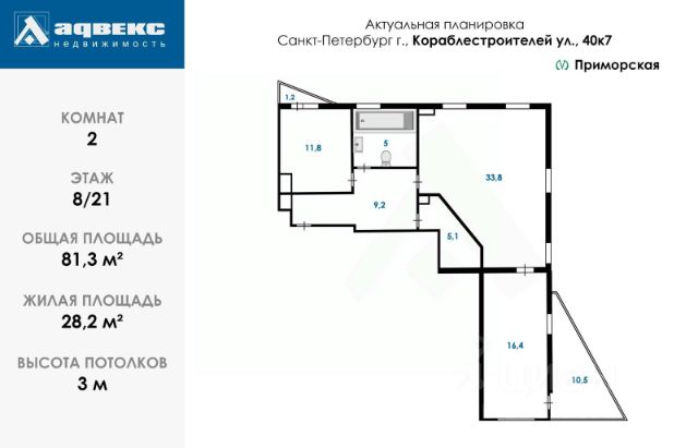 - В 15 мин от метро Приморская