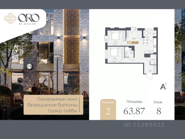 ЖК "ORO by Akvilon" - старт продаж жилого комплекса бизнес-класса в Московском районе. -Панорамные окна в пол во всех квартирах -Алюминиевые оконные профили с многокамерными стеклопакетами -Французские балконы с золотой окантовкой -Высота этажа 3,15 метра -Увеличенные дверные проемы - 2,3 метров высотой -Выделенные места для кондиционеров на каждом этаже -Фреоновые трубки заведенные в квартиру от мест установки внешних блоков кондиционеров -Дизайнерская отделка гранд-лобби с биокамином и золотыми элементами -Импортные бесшумные лифты с дизайнерской отделкой и увеличенной высотой кабины Отделка квартир Премиальная отделка в двух цветовых решениях: Beigestone и Greystone. Дозаказ для любой квартиры Стандарты Группы Аквилон для вашей комфортной жизни Thermo-S экономия на коммунальных платежах за счет дополнительно утепленных стен, кровли и цоколя. Энергоэффективные окна с селективным покрытием и аргоновым заполнением Soundstop - дополнительная шумоизоляция внутренних перегородок и межэтажных перекрытий, шумозащитные окна, малошумные лифты Light-in - в квартирах комфортный микроклимат. Многокамерные стеклопакеты сохраняют тепло зимой и отсеивают излишки излучения солнечного света летом, сохраняя прохладу в помещении. Vent-in - в каждой комнате есть клапаны индивидуальной вентиляции, которые обеспечивают приток свежего воздуха с улицы. inHOME умный дом в каждой квартире Интеллектуальная цифровая система, которая позволит дистанционно решать бытовые вопросы, управлять квартирой и экономить на оплате коммунальных услуг. В состав inHOME входят: IP-домофон, Face key, "умные" счетчики, датчики протечки, дистанционное отключение розеток, и т.д. Подземный паркинг -Лифты в каждой секции со спуском в паркинг -Отделка лифтовых холлов паркинга в стиле Гранд лобби + дизайнерская навигация самого паркинга -Возможность установки электрозарядки в паркинге или на территории ЖК -GSM усилитель в паркинге Двор -Ландшафтный дизайн с геопластикой и цветочными аркадами -Сад цветущих сезонов -Разноуровневая подсветка -Детские площадки нового поколения -Живой зелёный забор -Закрытый двор без машин Локация -7 мин. до м. Звездная -10 мин. до м. Московская -15 мин. до аэропорта Пулково -30 мин. до Невского пр. #Z6U7u2 Продается 2-комнатная квартира в округе Звёздное в Санкт-Петербурге.