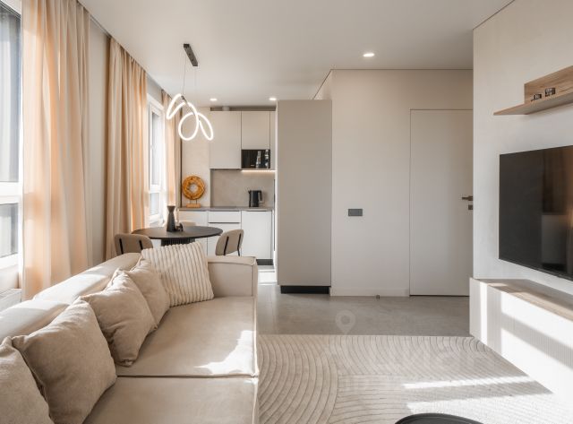 Много мест хранения: в квартире два балкона примерно одинаковой площади (~2,4м.кв.): на кухне и в комнате. Оба балкона с остеклением. Рядом с прихожей расположена вместительная гардеробная с зеркалом в полный рост. В санузле отделка стен и пола выполнена плиткой, подвесной потолок с точечными светильниками.