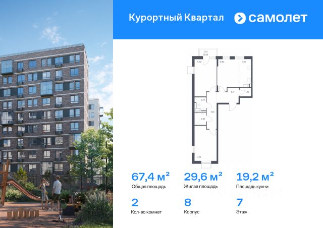 Строим кварталы для жизни с заботой о будущем. Предлагается 2-комнатная квартира комфорт-класса 59,2 кв.м в корпусе 1 на 7 этаже, в ЖК "Курортный Квартал" Квартира с чистовой отделкой. Доступность дополнительных опций уточняйте у застройщика. Приобрести квартиру возможно по специальным акциям от застройщика, с текущими условиями акций можно ознакомиться в блоке "Акций". Цена динамическая и может отличаться, уточняйте актуальность у застройщика. Чтобы воплотить ваши мечты о жизни на курорте, мы построили проект комфорт-класса в 20 минутах от Финского залива. "Курортный Квартал" расположен в престижном районе поселка Песочный, всего в 25 минутах от центра Петербурга и 20 минутах до метро. На территории будет школа на 1100 мест с бассейном и детский сад на 110 мест. На первых этажах откроются кафе, магазины и пекарни. Рядом — спортивные секции и медицинские центры. В 3 минутах от дома — Курортный лесопарк для пикников и спорта на свежем воздухе. В выходные можно загорать на пляжах Финского залива или наблюдать за цаплями на Сестрорецком разливе. Корпуса высотой 710 этажей с фасадами в природных оттенках. Приватные дворы-парки без машин — с тренажерами и детскими площадками. Есть зеленый бульвар и сквер для отдыха. Предусмотрен открытый паркинг. В сквозных парадных — безбарьерная среда и помещения для хранения колясок. Все квартиры — с готовой отделкой, поэтому вам не придется тратить время и силы на ремонт. Продается 2-комнатная квартира в микрорайоне Песочный в Санкт-Петербурге.