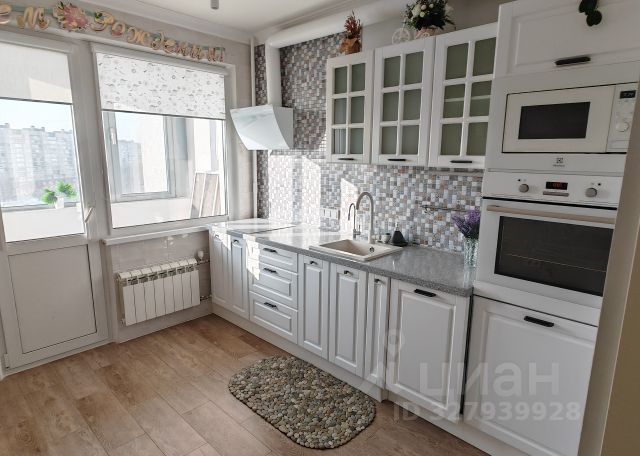 Квартира чистая и светлая. Свежий лаконичный ремонт. Всё выдержано в светлых тонах с добавлением тёмных акцентов. Есть оборудованная полками, вешалками и ящиками кладовка-гардеробная. Отдельный закуток под стиральную машину. В ванной комнате кафель на стенах и полу, натяжной потолок, новая душевая кабина, раковина, шкафчики. Туалет так же в кафеле. На кухне фартук из кафеля, очень удобная и стильная газовая плита, электрическая духовка, посудомоечная машина, стол - барная стойка смотрит в окно на зелёное море из деревьев. Кухня и комната не разделены дверью, что позволяет свободно поставить большой стол и рассадить за этим столом большую шумную компанию и никому не будет тесно) На кухне вся мебель и техника остаются. Остальная мебель и техника по договорённости. Также в комнате есть кондиционер, а в детской и на балконе тёплый пол!