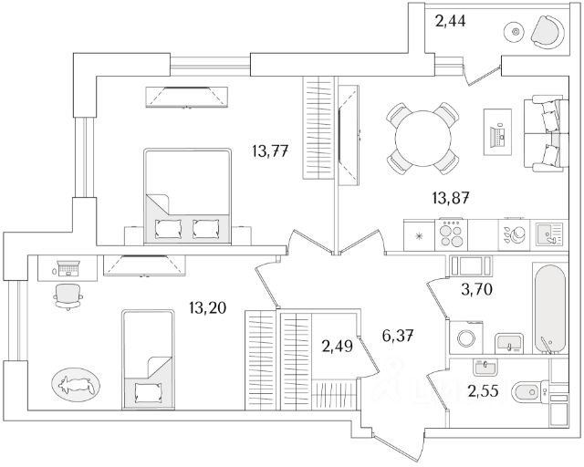Отличная планировка: Квартира грамотно зонирована, просторная кухня-гостиная и изолированные комнаты.