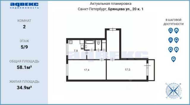 Уютная,светлая,теплая, просторная квартира! Солнечная сторона,все удобства. Качественный дом. Ремонт выполнен в спокойных тонах,в квартире есть всё необходимое чтобы сразу заселиться и жить без вложений. Техника, мебель остается. Сквозная просторная лоджия,можно выйти из любой комнаты. Закрытая территория двора, паркинг у дома и есть подземный( теплый можно снять в аренду при необходимости). Вид из квартиры выходит на город, видно Лахта центр ,он красиво светится ночью, как и весь город. О локации: -10 мин пешком до станции метро Гражданский проспект; -10 мин до КАД -Напротив Дома -ТРЦ Прометей (магазины , кино , спорт зал), Окей, Теремок и рестораны. -Рядом школа, сады. -Детская площадка на закрытой территории дома. Документация: -1 собственник. -Документы в порядке. -Можно в ипотеку. -Без обременений. Продает собственник! Звоните будем рады показать! Купить 2-комнатную квартиру на улице Брянцева в Санкт-Петербурге.