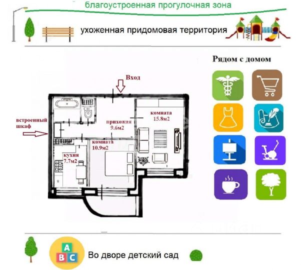 Прекрасная инфраструктура, все в пешей доступности сады ( во дворе), школы, всевозможные магазины, супермаркеты, парки и скверы, поликлиники, спортивные комплексы,отделения банка, аптеки все под рукой.