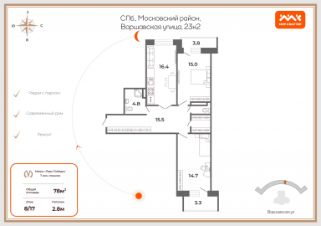 Арт. 115159111 Уважаемый покупатель, здравствуйте! Вашему вниманию предлагается семейная квартира с ремонтом в современном ЖК в Московском районе. Московский район - один из самых востребованных и комфортных для жизни в Петербурге. Развитая социальная и транспортная инфраструктура. Престижные школы, комфортные для прогулок современные парки, торговые, спортивные, медицинские комплексы, рестораны и магазины на любой вкус. ЖК бизнес класса "Янтарный берег" 2007г. постройки расположен в престижной части Московского района между парком Победы и парком Авиаторов. До метро Парк Победы меньше 10 минут пешком, рядом Московский проспект, удобные выезды на КАД и ЗСД, легко добираться в аэропорт и в центр города. Квартира с хорошими видовыми характеристиками; расположена на 8м этаже. Общая площадь квартиры 78м, включая 2 балкона ( 3.3м и 3.8м). Имеет удачную двухстороннюю планировку, которая включает в себя: просторный холл 18м. с вместительной зоной хранения, кухню-гостиную 16.5м., 2 изолированные комнаты правильной формы по 15м. с балконами, удобную гардеробную и 2 с/у. В квартире выполнен качественный ремонт с применением современных европейских материалов в светлых нейтральных оттенках. Полностью укомплектована всем необходимым. заезжай и живи! В комплексе Зеленая благоустроенная придомовая территория, видеонаблюдение. просторная гостевая паковка. Хорошее ТСЖ. В собственности более 10 лет, без обременений. Приглашаю Вас на просмотр. Предлагаем ПРЕМИАЛЬНОЕ обслуживание для требовательных клиентов. Оперативно организуем просмотр, предоставим полную информацию по объекту. 20 лет работы с требовательными клиентами подготовили нас к решению ВАШИХ сложных задач. Будем рады знакомству! Ул. Рубинштейна, д.8. Купить 2-комнатную квартиру на улице Варшавская в Санкт-Петербурге.