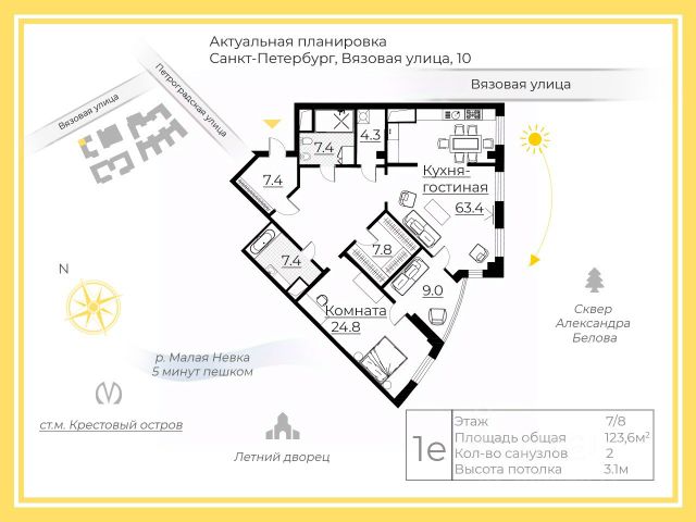 • ✓ В базе объявлений Циан 4 2-комнатных квартир на улице Вязовая в Санкт-Петербурге.