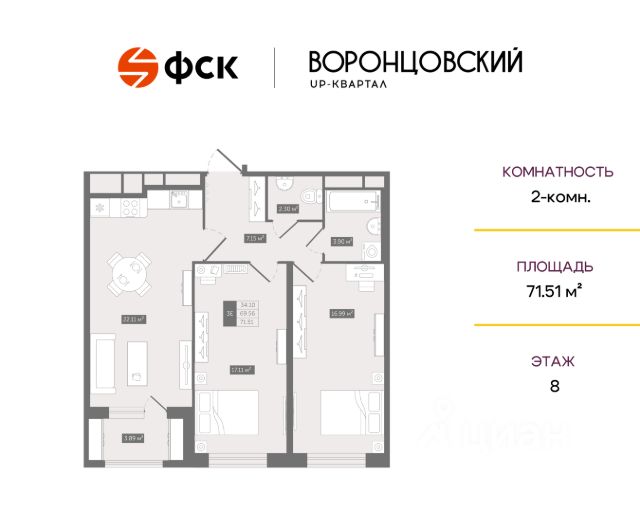 Варианты планировок — от студии до просторного трехкомнатного евроформата с гардеробной. Благодаря увеличенным окнам и потолкам высотой 2,8 метра, в вашей квартире всегда будет много естественного света.