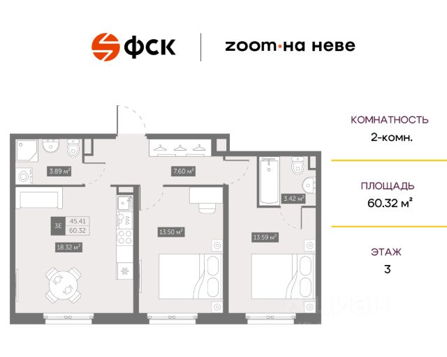 Цена со скидкой до 30% в прямой продаже от застройщика — только в этом месяце. При покупке апартаментов - паркинг за полцены. На все апартаменты действует беспроцентная рассрочка. Купите на распродаже! Покупка недвижимости в Zoom на Неве сейчас со скидкой до 30% позволит через 2 года получить доход до 6 300 000 руб. Роскошные виды на Неву. 2-к апартамент в комплексе класса бизнес-лайт Zoom на Неве на 10-м этаже. Общая площадь 55,31. Предчистовая отделка. Zoom на Неве расположен в новом месте силы рядом с центром города на первой линии Октябрьской набережной в Невском районе, всего в 7 км от исторической части Санкт-Петербурга. Большой выбор эргономичных и максимально продуманных планировок позволит каждому найти вариант по душе. Панорамные виды на Неву, благоустроенные дворы, детская игровая комната, подземный паркинг, коммерческие зоны на первом этаже, это и многое другое делает Zoom на Неве идеальным местом для жизни. Особенности: - Панорамные виды на Неву и город; - 10 мин. до Парка Строителей, 15 мин. до Лондон-молла, Ленты, Максидома, 15 мин. до метро "ул. Дыбенко", 12 мин. до КАД, 10 мин. до центра; - Единая архитектурная концепция. Сдержанные и монументальные фасады в неоклассическом стиле; - Парадный лобби для жильцов. Единый вход в комплекс с администратором, зоной ресепшн и охраной, зоной для бесконтактной доставки посылок и еды; - Подземный отапливаемый паркинг с доступом из парадной; - Доступно 3 варианта отделки на выбор: черновая, предчистовая (White Box) и чистовая; - Зоны отдыха для взрослых и детей, Wi-Fi-покрытие во дворе и в паркинге, зоны для питомцев, арт-объекты и много другое. В шаговой доступности вся необходимая инфраструктура от детских садов и школ до супермаркетов и салонов красоты; - Все происходящее контролируется видеокамерами, а покой внутренней территории и безопасность ваших детей гарантируется полным отсутствием транспорта во дворах в концепции "без машин".