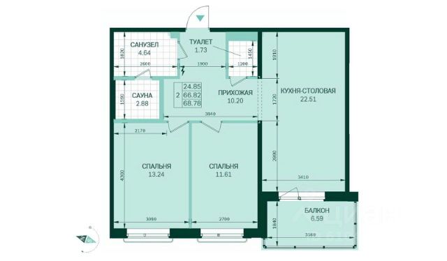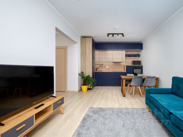 2 просторных спальни. Большая просторная гостиная, объединённая с кухней, имеет выход на остекленный балкон, а с балкона можно выйти на террасу, где в хорошую погоду можно устроить пикник, или просто насладиться чистым и свежим воздухом, умиротворенно качаясь на качелях.