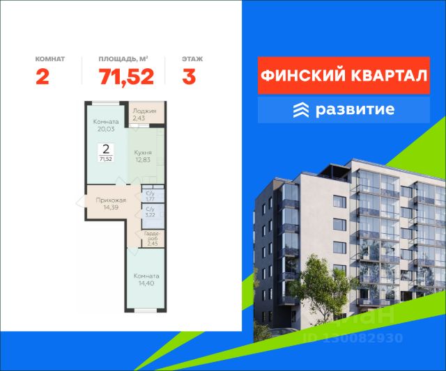 Продается квартира площадью 56.05 кв. м без отделки. Квартира расположена на 3 этаже 8 этажного дома, в жилом комплексе комфорт-класса "Финский Квартал". "Финский квартал" - это уникальный проект комфорт-класса для тех, кто хотел бы жить на природе, но при этом находиться вблизи Северной столицы. Расположенный в окружении одного из самых крупных парков Ленобласти - Лахтинского, проект предлагает своим жителям доступную инфраструктуру, комплексное благоустройство территории, 6 секций переменной этажности с современной архитектурой, которая гармонично дополнит район и будет радовать проживающих еще много лет. Найдите свою идеальную квартиру в ЖК "Финский Квартал"! Расположение Пешком: - 5 мин. до детского сада и супермаркета; - 8 мин. до остановки "Зеленая улица"; - 10 мин. до лесопарковой зоны. На автомобиле: - 3 мин. до Приозерского шоссе; - 10 мин. до Выборгского шоссе; - 12 мин. до КАД; - 30 мин. до ст. метро "Проспект Просвещения". Благоустройство - большой яркий двор с ландшафтным дизайном; - живая изгородь, кустарники и хвойники; - умное зонирование тихих и активных площадок; - сквер для прогулок и отдыха; - изумрудные лужайки для пикников; - дорожки для пешеходов и велосипедистов; - большие игровые площадки; - мягкое покрытие для безопасности детей; - тренажеры, турники и веревочные комплексы; - пространство только для пешеходов - без машин; - наземная парковка за пределами двора; - специальные площадки для выгула питомцев; - светлые дизайнерские холлы; - светопрозрачное остекление и большие окна; - декоративная подсветка парадных; - колясочные помещения для комфорта родителей; - места для хранения велосипедов и самокатов. Окружение - свежий воздух: парк усадьбы "Осиновая Роща", Лахтинский парк, лесопарк "Курортный", Левашовский заказник, Ново-Кавголовский лесопарк; - водные объекты: Сестрорецкий Разлив, пляжи у Тохколодского и Большого озер, залив Сярюнлахти; - инфраструктура: 2 детских сада, школа, кафе, продуктовый супермаркет, больница; - для крупных покупок: ТРЦ "Китай-Город", "Мега-Парнас"", "Гранд Каньон"; - активный отдых: горнолыжные комплексы "Охта-Парк" и "Токсово", конный клуб "Осиновая Роща", ФОК "Норус".