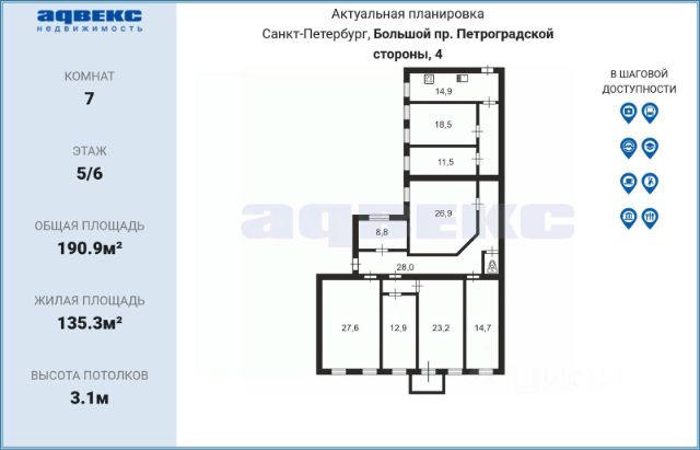 Арт. 114981877 Идеальный вариант для семьи, которая ценит комфорт, приватность и высокий уровень жизни Локация • Жить на Константиновском проспекте — значит быть в самом сердце престижного Крестовского острова • Здесь тишина зелёных парков сочетается с удобством жизни в центре Петербурга • В пешей доступности: прогулочные аллеи, современные спортивные комплексы, детские секции, семейные рестораны и кафе • Район славится лучшими школами города — рядом "Газпром школа", Академическая гимназия 56 и несколько детских садов • Это место, где всё создано для гармоничной семейной жизни: от развитой инфраструктуры до атмосферных парков для прогулок с детьми. Дом • Жилой дом "Лазурит" — часть престижного комплекса "Кристаллы Крестовского". • Современная архитектура, всего 51 квартира в доме — атмосфера камерности и статуса. • Закрытая территория с видеонаблюдением, подземный паркинг с прямым доступом из дома, и круглосуточная охрана обеспечат чувство защищённости и уюта. • Здесь живут семьи, которые ценят приватность, комфорт и высокий уровень сервиса. Квартира Просторная квартира площадью 106,4 м² создана для жизни в ритме большого города, но с ощущением дома. Уютная гостиная-кухня площадью 42 м² —центр общения и семейных вечеров. Три изолированные спальни с панорамными окнами на север, наполняющими пространство светом. Санузел один площадью 8 м², с дизайнерским ремонтом и премиальной сантехникой. Уют и тепло обеспечивают полы из редких пород дерева: тик и ценной породы азиатской древесины мербау. Эти материалы не только красивы, но и долговечны. Система центрального кондиционирования и вентиляции, тёплые полы. Гардеробная и вместительные шкафы сохранят порядок и эстетику интерьера. К квартире можно приобрести семейное машиноместо в подземном паркинге — редкая находка для Крестовского.